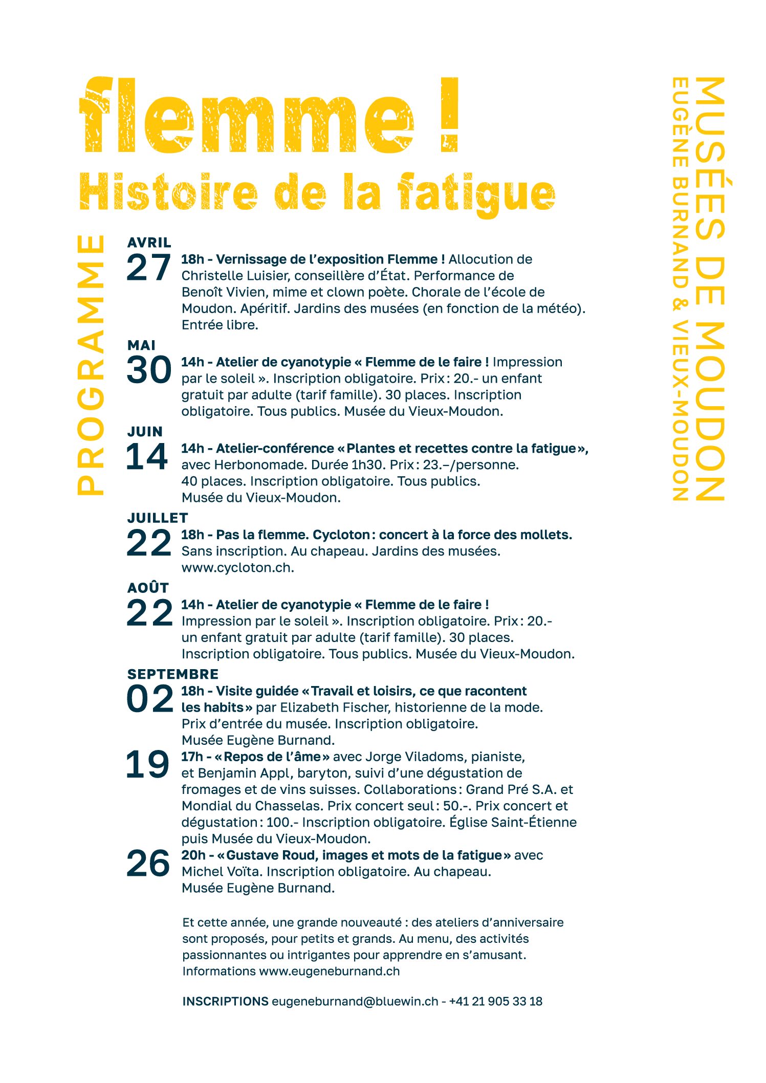 Au Musée du Vieux-Moudon, l’histoire sociale de la fatigue. Au Musée Eugène Burnand, le travail et le repos en art et en costumes. En collaboration avec le Musée Artistes Femmes (MAF).